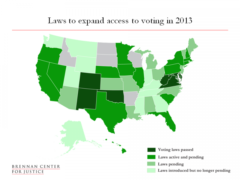 In 2013, some state legislators continue to push laws that would make it harder for eligible American citizens to vote. But there’s good news, too. More and more states are pressing measures to improve elections.