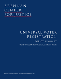 Universal Voter Registration Policy Summary – A detailed policy proposal calling for federal action to move the country towards a modernized voter registration system. A system of universal registration would build on existing policies and innovations undertaken by state and local officials.
