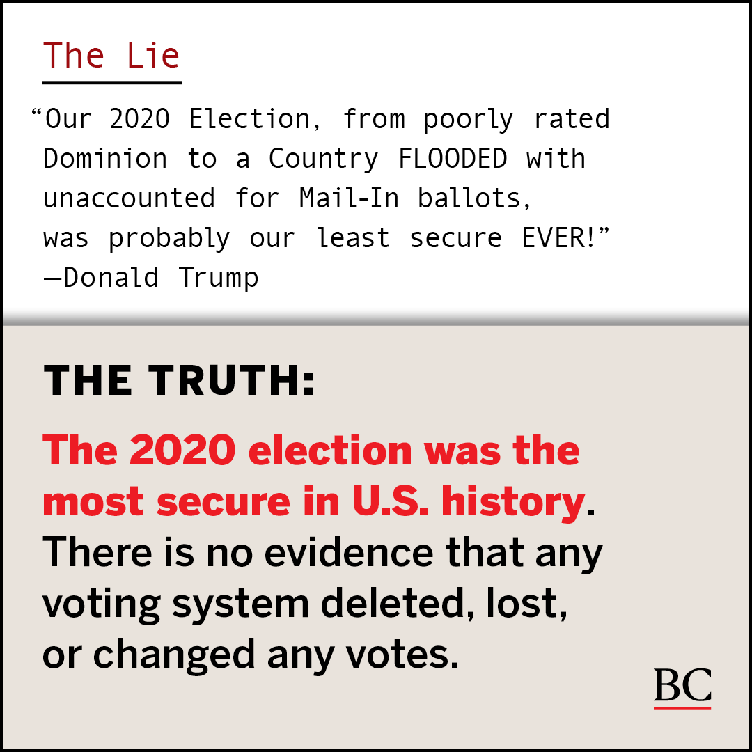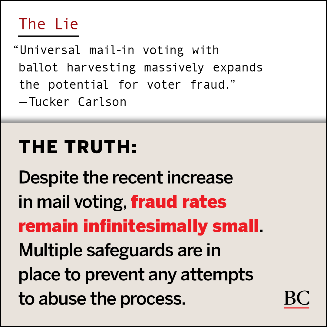 The repeated false claims about mail voting, voting machines, and voter fraud risk undermining the public’s faith in elections. Help us debunk these lies and lift up the truth: our elections are safe, secure, and fair.